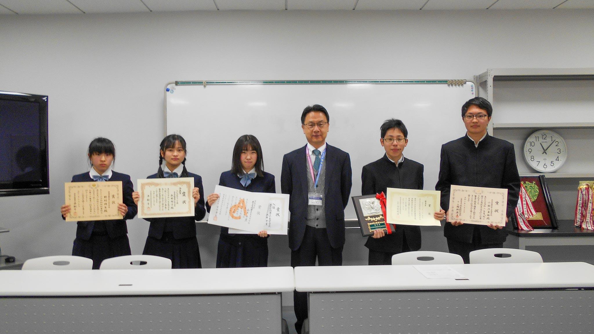 今年はコロナ対策の関係で二学期制としていますので、24日が後期前半終了の全校集会となりました。放送により校長が講話を行い、その中で、コロナ禍の状況にあっても逞しく、志高く部活動や各種コンクール、また自主的な課外活動で活躍した生徒たちを紹介しました。少し長い時間をいただき、辯論部、競技かるた部、演劇部、陸上競技部、テニス部、サッカー部、放送委員会、税の作文コンクール、探究学習発表会の入賞者など総勢37名の功績を讃え、集会後に賞状伝達を行いました。このようにたくさんの表彰や自主活動を紹介できることは学校の誇りであり、大変嬉しいことです。来たるべき年も、生徒たちの主体的な活動を大切にし、応援していきたいと思っています。講話の最後には、「日々、必死で闘ってくださっている医療従事者の皆さんがたくさんおられることにも思いを致し、感謝の気持ちをもって、今自分のできる感染防止対策をしっかり行っていくことが大切です。おうちで過ごす時間が増えることと思いますが、ご家族といい団欒の時間を持って、一日一日の計画を立てて時間を大切に過ごしてください。」と伝えました。