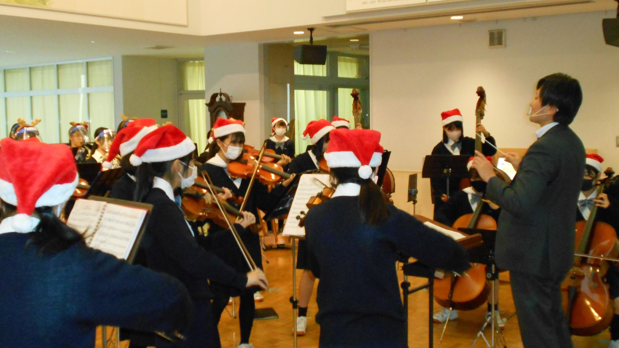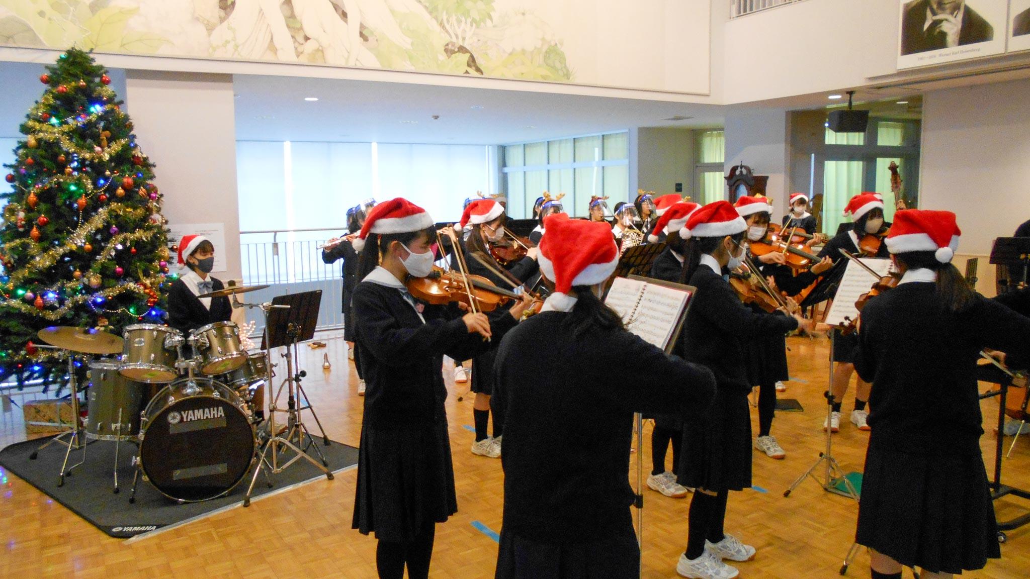 放課後は室内楽部による規模を縮小してのクリスマスコンサートがありました。KANの「愛は勝つ」、ZARDの「負けないで」、ゆずの「栄光の架け橋」で始まった美しいメドレーは、その歌詞にある力強いメッセージとともにこの難局を乗り越えようと頑張る生徒たちの前向きな姿と重なり、校長はひたすら感動で心を揺さぶられておりました。みんなありがとう。