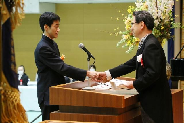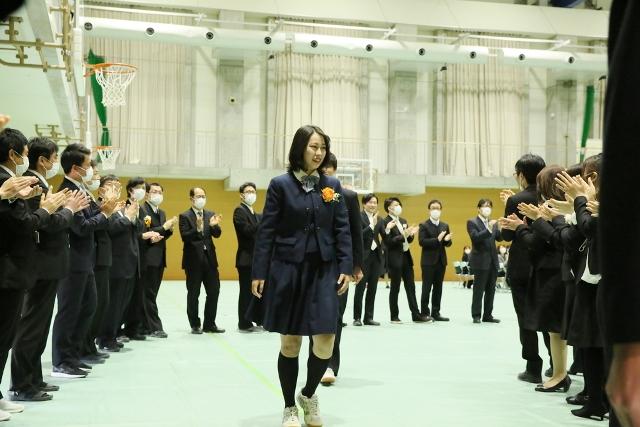 校長式辞では、そのことを讃え、「二十歳前後の時は宝物のような時間です。一日一日を大切に生きてください。そして、「自ら生きて、活きる」を建学の精神とし、清新で温かく、文化の香り高い校風をもつ奈良学園登美ヶ丘で学んだ誇りを胸に、ご活躍されることを期待しています。」と餞の言葉を贈りました。