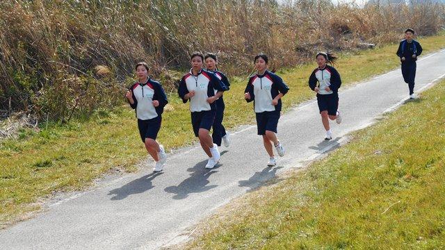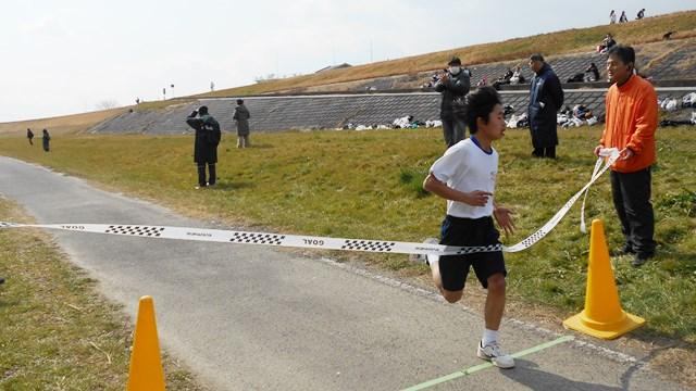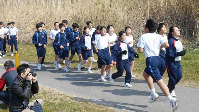 スタートラインに立つと皆、真剣な表情に様変わり。号砲と共に元気に駆け出していきました。コースは木津川沿いの平坦な河川敷ですが、時折吹く冷たい風と心身の疲れが行く手を阻みます。それでもトップ集団で帰ってきた生徒の中には、最後まで見事な快走で、テープを切った後も余力を残している者もいました。次々とゴールになだれ込む選手たちは、走り切った達成感と心地よい?疲労感の中、互いに抱擁しながら健闘を称え合う姿もありました。私にとって10kmはまさに未知の世界ですが、これからでも挑戦できるかもと無謀な勇気をもらったように感じました。