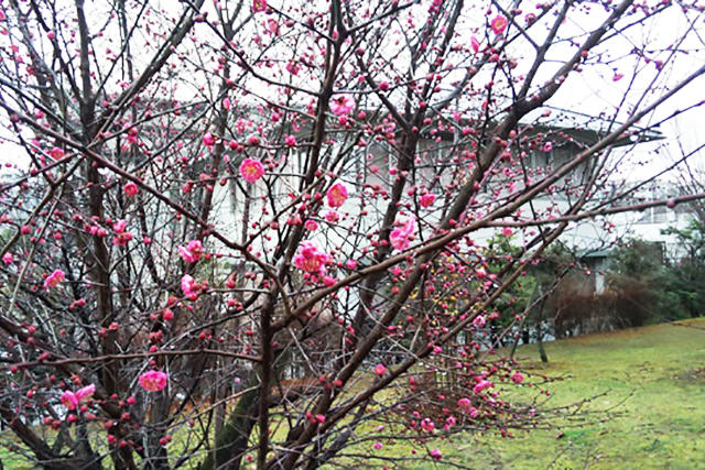 校庭の紅梅が咲き始めました。奈良登美受験生たちにも早く春が来ますように。