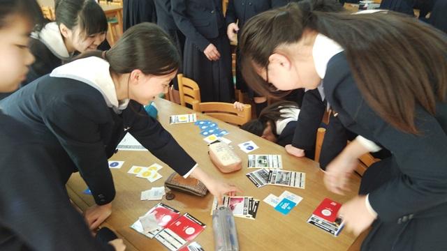 生徒たちは3人一組のグループ内で相談し合い、ゲームを楽しみながらそれぞれのゴールを目指して頑張っていました。前半では自分たちのゴールばかりに意識を向けていましたが、中間発表を通してSDGsの本質に気づき、自分の持っている余剰カードを他人の目標達成のために使うなど、後半では他のグループと協力し全体の目標達成に向けて取り組んでいました。ゲームが終了する頃には「世界は繋がっている」「自分が起点である」ということを理解することができたようです。