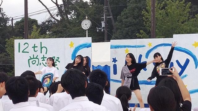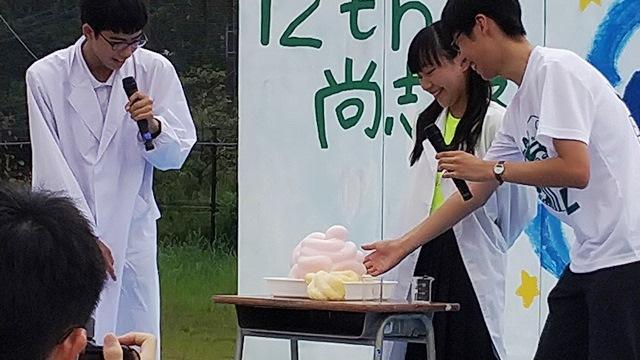 体育館行事は、室内楽部のコンサートで開幕し、管弦楽の美しい旋律に続いて、見応えのあるクラス劇、有志バンドのエネルギッシュな大音響が続きました。グラウンドに設置された野外ステージは科学部による「爆破大実験」、有志による可憐なダンスと次々にイベントは続きます。最後のフィナーレでは、展示・イベント、模擬店の人気投票結果の発表、生徒会作成の尚志祭準備から本番までのフォト放映、全員での大合唱と三本締めまで全てが生徒会、特命委員などの生徒の自主的な企画・運営により仕切られていました。本校生徒たちのパワーと創造力、そして楽しむときはしっかり楽しむという奈良登美スピリットを改めて実感した二日間でした。