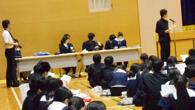 生徒から会計報告に対する質問や尚志祭テーマソングの選定方法についての質問が出て、それに対する担当生徒による答弁、再質問など活発な議論が展開されました。どれも学校生活をよりよくしたい、できるだけ多くの生徒の意見を取り上げてほしいという思いからの質疑であり、答弁も実に明快で堂々としたものでした。