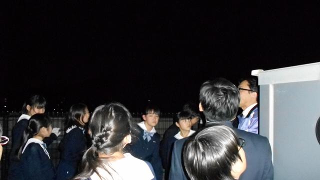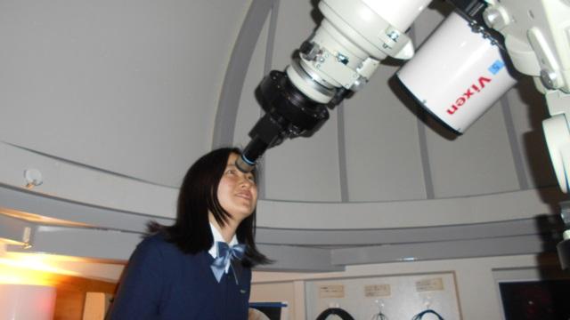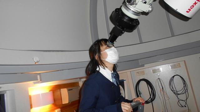 口々に「見えたー!」「すごーい、きれい!」と感動の声。月面クレーターの鮮やかな凹凸、太陽を除けば地球上から見える最も明るい恒星といわれるシリウスの輝きに見入り、遙かかなたの天空の神秘に思いを馳せました。コンピュータ制御で見事に星をとらえる本校の天体望遠鏡の性能にも感心しきりの生徒たちでした。