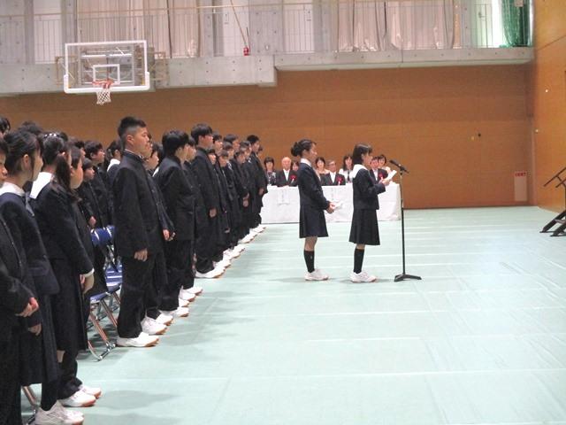 式辞では、「広い視野に立って、人とつながる力を身に付けよう」という話に続いて、「皆さんには無限の可能性があり、これからの努力次第で何にでもなれる力を持っています。もちろん、日々の生活の中では自分の希望や目標通りにすべての物事が進むとは限りません。中学・高校時代は、むしろ思い通りに行かないことの方が多いでしょう。しかし、そのような時にも、自分はこんなものだと決めつけたり、自分を責めたりする必要はありません。それよりも、それらの困難はむしろ自分を成長させてくれるチャンスであると知ることが大切です。・・・夢は大きく志は高く、この大切な青春時代を、このキャンパスで思い切り過ごしてください。」とメッセージを贈りました。
