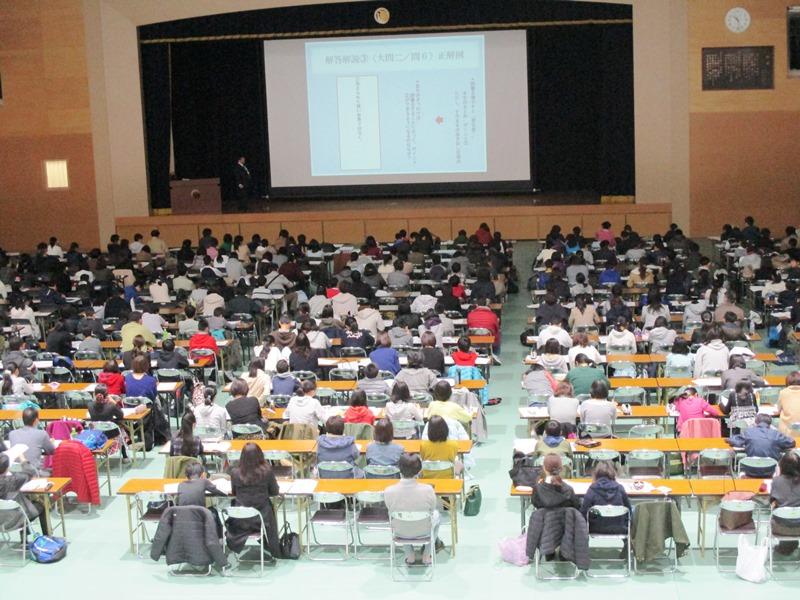 国語では、記述問題の解答方法を中心に解説があった。強調されたのは、「本文の内容は理解できていると思われるのに、何が問われているかをよく考えていないために、求めるものとはズレた解答を書いている者が多い」ということ。「なぜ」「どういう気持ち」という問いかけなのに、文末がそれに対応できていないという点も指摘された。また、「人に読んでもらう答案であるという意識を持って、『字をていねいに書く』を心がけてほしい」ということも繰り返された。