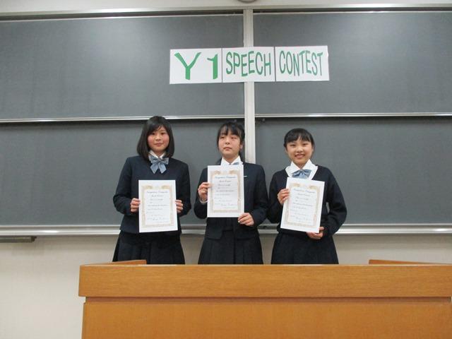 11月15日(木)、Y1(中3)学年の校内スピーチコンテストが行われた。クラス予選で選ばれた11名の発表者が、英語で書いた自分の意見や体験を語る。M3・4(中1・2)のレシテーションコンテストとは違って、彼らの英作文の力も問われることになる。事前に原稿に目を通したが、生徒たちの興味がどのようなところにあり、それをどのように英文にまとめているのかがよく分かって、期待を持って審査に臨んだ。