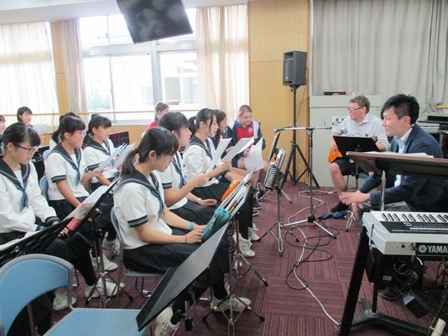 音楽では、日本の歌として「ふるさと」を贈った後で、オーストラリア発祥の、彼の国を代表する歌「ワルチングマチルダ」に皆で取り組んだ。少し哀愁を帯びた、優しく叙情的な歌である。一度二度と歌ううちに本校生も慣れてきたようで、きれいな合唱が聞こえるようになってきた。歌の交流は互いに打ち解けやすく、教室中がほのぼのとした雰囲気になっていた。