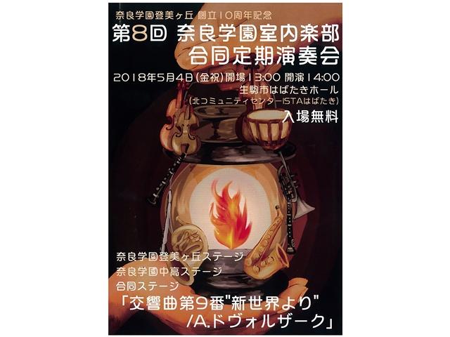 4月14日(土)の放課後、演劇部の新歓公演終了後に、チェロを抱えて大講義室に向かった。5月4日(金祝)に行う「第8回奈良学園室内楽部合同演奏会」(生駒市、北コミュニティセンターISTAはばたきの「はばたきホール」、13:00開場、14:00開演)の練習に参加するためである。これは奈良学園中高と本校の室内楽部の合同演奏会で、各校のステージと合同演奏という構成で行われる。両校の室内楽部に関わってきたことから、第1回から皆勤で参加させてもらっている。