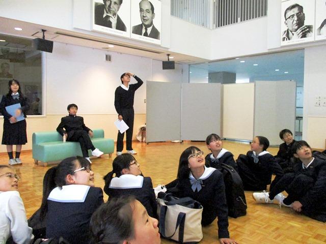 4月14日(土)の放課後、サイエンスホールで、演劇部の新歓公演が行われた。今年度からM3の宿泊オリエンテーションが1学期中間考査後になったこともあり、クラブへの入部の時期が早められた。そこで早速演劇部も新入生たちにアピールしようということでこの日の開催となったようである。彼らの目論見通り、M3生たちが終礼を終えて、サイエンスホールに集まってきた。