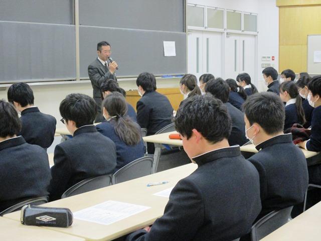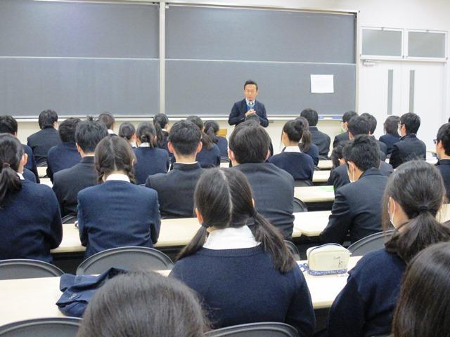 続いて、学年主任からは、「2日間の長丁場に耐えられるよう、あと1週間でしっかり身体を慣らしておくこと。その上で今持っている力を100%出せるようにしておくこと」という話があった。各担任からは、「野球に譬えれば、いよいよ公式戦のスタートである。この1週間は、今までの苦しい練習を経ての調整期間だと思う。しっかり調整し、本番では思い切り”楽しんで”ほしい。ただし、他の受験生に迷惑をかけるようなことはするなよ。(A組)」、「先輩たち以上に演習をしっかりこなしてきた。自分で思っている以上に君たちの実力はついているので、自信を持って臨んでほしい。大阪天満宮で引いたおみくじの”凶”は全部私が引き受けるから大丈夫。(B組)」、「できないものはできない。それは君だけじゃない。皆ができないのである。受験会場で悔やんでいても仕方がない。自分にとって最高のパフォーマンスを発揮して来い!(C組)」と熱弁が続いた。