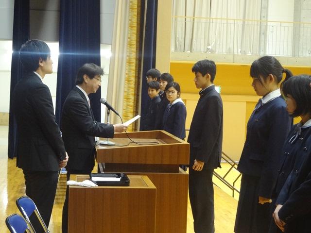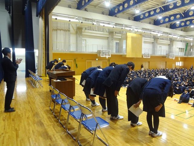 11月9日(木)、中高生徒大会が開催された。先の生徒会役員選挙で選出された第9代生徒会執行部役員の任命式を兼ねるということで、私も出席させてもらった。
