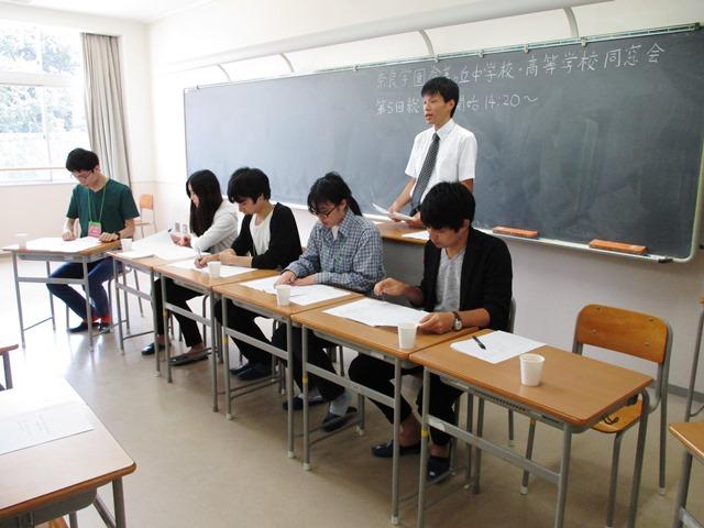 Y棟3階、お化け屋敷が並ぶフロアの手前の教室では、「卒業生の広場」が開催されていた。同窓会長をはじめ役員の方々が、訪れる卒業生等に対応するための部屋である。午後からはここで第5回同窓会総会が開催され、私もご挨拶をさせていただいた。終了後は、大学院へ進んだ高校1期生や4回生となった中学1(高校3)期生たちから就職内定の話を聞かせてもらったりした。同窓生の輪がもっともっと広がることを願うばかりである。