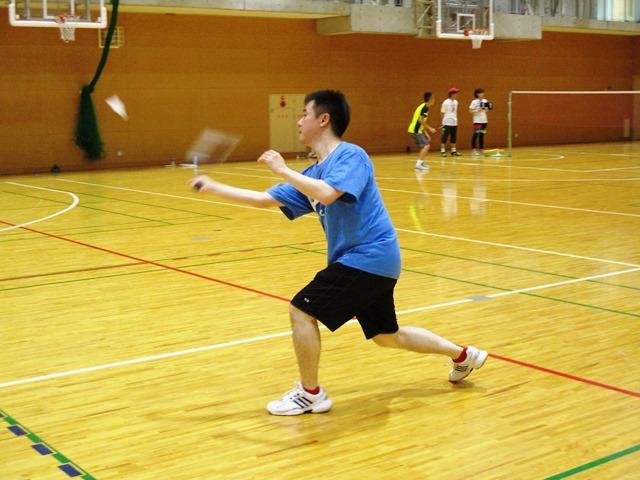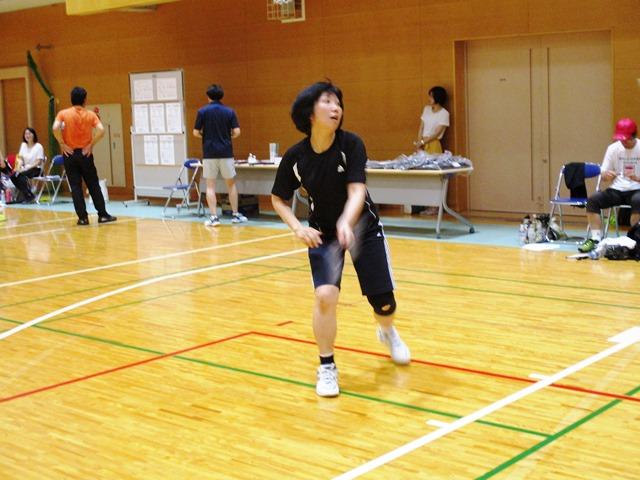 決勝は、各組の同位同士によるトーナメント戦である。ここでは実力の近い方同士の対戦となるので、シーソーゲームが多くなる。真剣さも、シャトルへの執念も一層増してきた。皆さんの汗と笑顔がとても輝いて見えた。競技の都合上、空調を使わずに行った大会であったが、幸いにして暑さで気分を悪くされる方も出ず、無事終了することができた。参加された方々と協賛いただいた登翔会の方々のご協力に感謝申し上げる。お疲れさまでした。