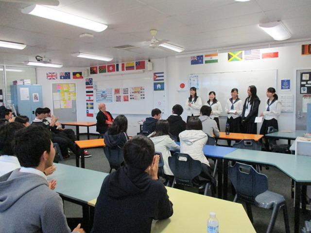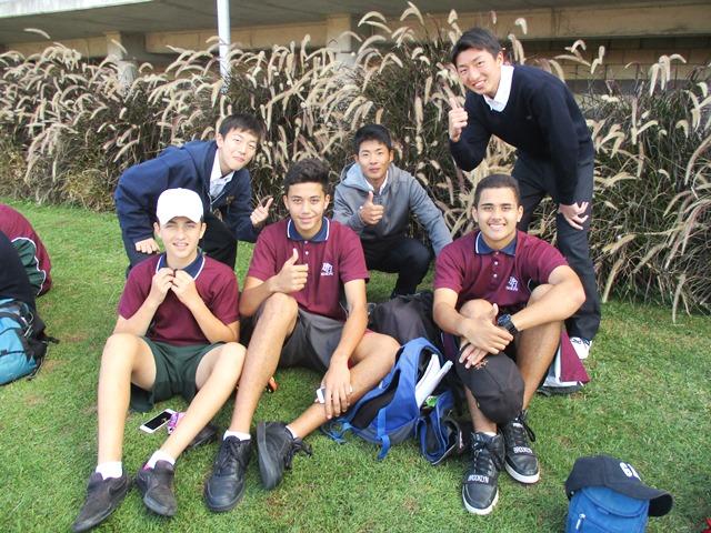 午後の訪問のためにモーニングティーの時間がランチタイムとなったが、この学校のバディたちは実に親切で、この短い時間を一緒に過ごそうと多くのバディが生徒たちのところに駆けつけてくれた。中には日本語の上手なバディもいる。本校の生徒たちもそれが当たり前のように輪を作って彼らを迎える。お互いにもう自然に振舞えている。ここでも若者同士の溶け込みの速さを見せてもらった。本校生全員が皆元気でこれまでの日数をこなしてくれている。実際に経験するこれらの一つひとつが、彼らの未来に繋がることを確信した2日目の視察であった。