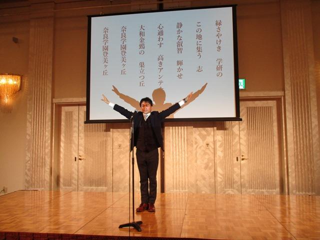 1月7日(土)、本校の高校4期生(中学2期生)の成人を祝う同窓会がウェスティンホテル大阪で催され、卒業当時の学年の先生方と共に、私も出席させていただいた。今年成人式を迎える彼らは、中学開校2年目、高校開校の年に入学した生徒たちである。ちょうど本校の校歌が誕生したのもこの年であり、入学式の折にはこの校歌の歌詞にまつわる話を式辞とした。その彼らがいよいよ成人である。時の速さをますます感じることになった。