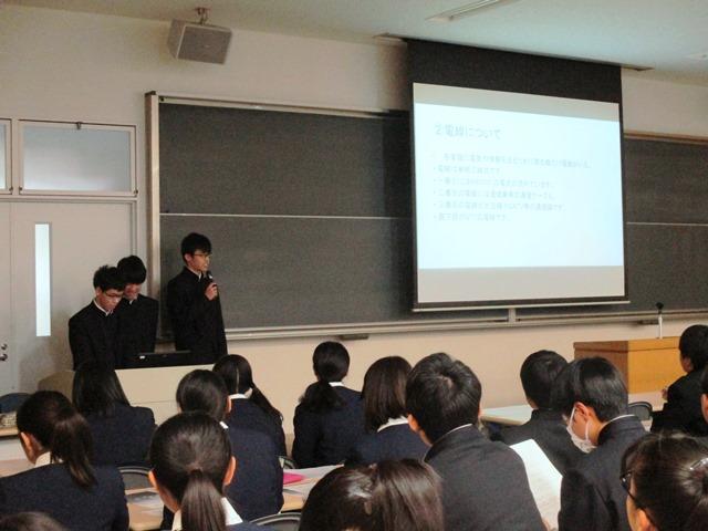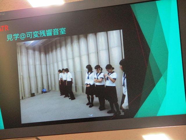 お聞きした話をたくさん話そうとし過ぎて時間切れになった班や、内容が難し過ぎたのか、たどたどしく解説をする班なども見られたが、実際にそこを訪れたから分かる内容をうまく伝える班もあって、生徒たちは、概ねこの取り組みの意義を理解してくれていたようである。「きんでん」での電柱や電線の話、「構造機能科学研究所」での”RIMソープ”体験談、「国会図書館」での”なぜ書庫は地下にあるのか”という疑問、ATRでの”ライフサポートロボット”や”可変残響音室”の見学体験談、「あわさい」での”五臓・五味”や”接客の五原則”の話、「奈文研」での瓦や木簡の発掘物の見学話、「福寿園」での”発酵茶・半発酵茶・不発酵茶”の区別の話など、聞いていてこちらも興味をそそられる話が多かった。