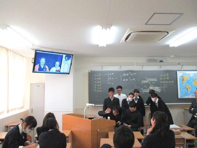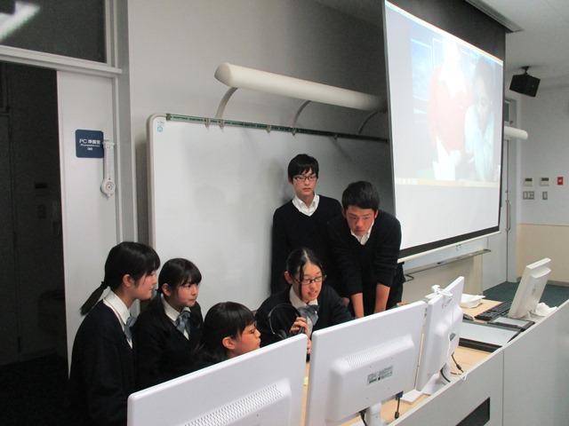 Y3生たちは興味津々なはずなのだが、そこはやはり日本人的な気質が働くのか、最初は皆恥ずかしげに相手に声をかける。「My name is ~」、「I like ~」までは出てくるのだが、その後がスムーズに続かない。周りで同級生たちが見ているからだろうか。個人的に話をするなら、もっと頭をひねって、いろいろな会話をしかけることもできるのだろうが、まだよく知らない画面上の相手に、タイムラグを考えながら会話を続けるのは難しいようだ。むしろ相手の方が、用意した日本語をたどたどしく読みながら、生徒たちに質問を仕掛けてくる。その答えを皆で頭を寄せ合って考えているという光景が度々見られた。中には、勇気を奮って(?)、「Do you have a boyfriend.」と相手の女生徒に尋ねる者や、「I like “少女時代”,too」と相手が好きだといったアイドルについて会話が進む場面も見られた。