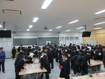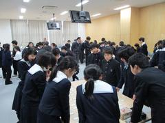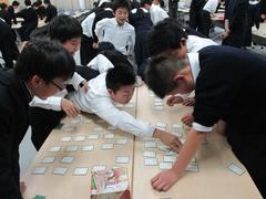 2月1日(月)、M3学年の「百人一首かるた大会」が大講義室で行われた。この催しは、国語の古典の授業で学んできた百人一首についての成果を試すためのものでもある。