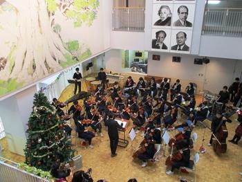 12月16日(水)、半日授業が終わった午後、クリスマスツリーの飾られたサイエンスホールで、室内楽部のクリスマスコンサートが行われた。演奏曲目は、M.スウィーニーの序曲「ブラック・フォレスト」、ディズニーメドレー、クリスマスメドレーの3曲。