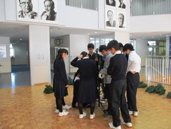 考査が終了し、晴れやかな笑顔で集まってくれた生徒会役員たちはまずツリーの組み立てに取りかかった。大きなツリーだけに、どう繫げばよいのだろうかと皆で頭を寄せ合う場面がしばしば見られ、技術科教員の力も動員された。