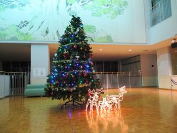 C棟にあるサイエンスホールはP・M・Yそれぞれの課程の児童生徒が利用する場所であり、2階から4階までの吹き抜けになっている。大型のクリスマスツリーを置くには格好の場所である。