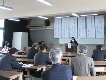 現在近畿各府県でこの弁論部会があるのは奈良県だけであり、この大会の最優秀賞受賞者が来年の全国総文祭(開催地:広島)に出場する資格を得るのだが、県内でもあまり関心は高くなく、この発表会には応募すれば出場できるということになっている。今年の出場者は10名。畝傍高校4名、法隆寺国際高校2名、高田高校1名、青翔高校1名、天理高校1名、そして本校から1名の参加であった。畝傍高校の参加者が多くなってくれたことは嬉しいのだが、私学の参加が少ないことが残念だった。