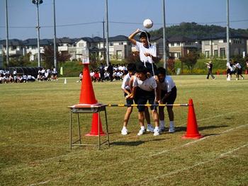 午後からのプログラムは各学年の表現演技や学年競技が並ぶ。M1・2(小5・6)合同の「心一つに」、M3(中1)の「Top of the world」、M4(中2)の「Happiness」が表現演技のタイトルである。一部を見せてもらったが、内容と感想は本番後にしたいと思う。学年競技は、M1の「障害物競争」、M2の「借り人競争」、M3の「ならとみ騎馬隊」、M4の「カウボーイ競争」である。「カウボーイ競争」とは聞きなれない競技である。試技をみせてもらってなるほどと納得がいった。ただし、生徒たちもあまり慣れていないようで、なかなか投げ縄代わりのボールが的のペットボトルに当たらない。そうしているうちに馬もどんどん疲れてくるという有様。見た目の格好良さとは違って、なかなか過酷な競技のようである。