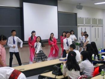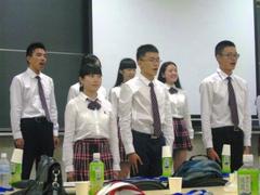 その後、特別出演としてY3生が登場し、今年のオーストラリア研修で披露した英語による本校紹介のプレゼンを行った。この辺りから、多少緊張感のあった中国の高校生たちの気分もほぐれ始め、本校生たちの英語の問いかけに、本校生以上の巧みな英語で返事を返してくるという光景があった。 “友好的”以上の、彼らの活発さ、積極性、知性を私は感じ始めた。