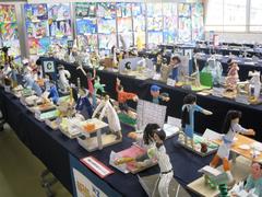 まずは大会議室のMY生の図工・美術・書道作品を集めた「作品展」。M2(小6)の「未来予想図~15年後のぼく・わたし~」という粘土細工作品が気に入りました。まさに”夢を形に”という表現活動でした。