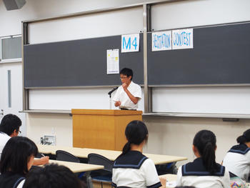 14名(男子7名、女子7名)の出場者がいたのだが、今年のM3のレベルの高さに感心した。私自身は決して英語に堪能ではないのだが、皆良い発音で流暢に話す。以前は、緊張のために途中で詰まってしまい、思い出せないまま終了してしまうという者もいたのだが、ほとんどそういう者はいなかった。