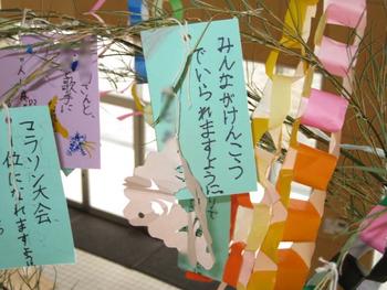 子どもたちの願いを見せてもらうと、「みんなけんこうでいられますように」、「マラソン大会1位になれますように」、「テストでよい点がとれますように」など、優しい心遣いと素直な願いがあちこちに飾られていました。