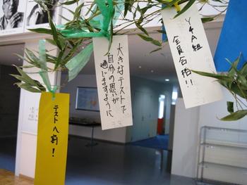 こちらの飾りには、「自分の将来の夢がかないますように」、「期末テストで全科目95点以上取れますように」、「大きなテストで自分の思いが通じますように」、「テスト八割!」、「Y4(高3)A組 全員合格!!」など、目前に迫った期末考査を意識したものが多いようです。牽牛・織姫を意識してか、恋の悩みのお願いもいくつか見かけてしまいました。テストも恋も合格も、大願成就を祈ります。