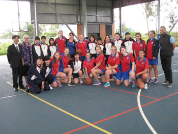 次に向かったのはAQ校である。現在この学校との交流が最も進んでおり、今年も9月にはこの学校の生徒たちが本校を訪れる予定である。到着後に案内されたのは新しくできたバスケットボールコートである。先日の男子の試合に続いて、今日は女子のバスケットボール対抗戦の最中であった。残念ながら本校は経験者が少なく、選手を揃えたAQ校の圧勝であったが、コートの周りで本校に一生懸命声援を送るAQ校の生徒たちの様子に感激した。