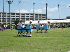 次は、力技が続く。Y1・Y2による「綱引き」、M1~4女子による「綱取り合戦」である。特に、女性同士の戦いとなる「綱取り合戦」は”逞しい女子”の活躍の場である。一本の綱にこだわるか、有利な綱の応援に回るかなど、頭を使う競技でもある。心配していた”目を覆うばかりの…”という状況はなく、フェアプレイに終始した戦いであった。ホッとした。