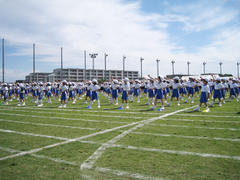 次は演技が続きます。PP3(年長)とY2女子による「はばたけ!大空へ!」、P4・M4、そしてY2男子による「奈良登美伝」です。2つとも恒例となっている演技ですが、「はばたけ…」では、年長児たちが大きなお姉さんと一緒に演技することがとても楽しそうで、また、Y2女子が園児たちの手を引く姿がとても頼もしくて優しそうで、ほれぼれと見させてもらいました。
