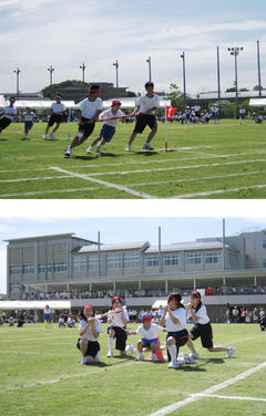 一方、「奈良登美伝」は、P・M・Y合同での組み立て体操。それぞれの学年のバランス感覚と力強さが試されます。繰り返し練習を重ねたこと、指導に従って慎重に取り組んだことが実り、一つひとつの演技を見事にこなしました。それぞれのターム及び学年での成長を見ることができる本校ならではの演技種目だと思います。(その2に続く)