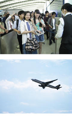 その後、ここまで来たからにはと、展望ホールで彼らの乗る飛行機の離陸を待った。空港内の混雑がここでも表れており、まるで地下鉄並みに次々に離陸する。その混雑が影響したのだろうか、予定を約30分遅れてようやく彼らの飛行機が飛び立った。機内の彼らの今の気持ちに思いを馳せつつ、機影を見送った。