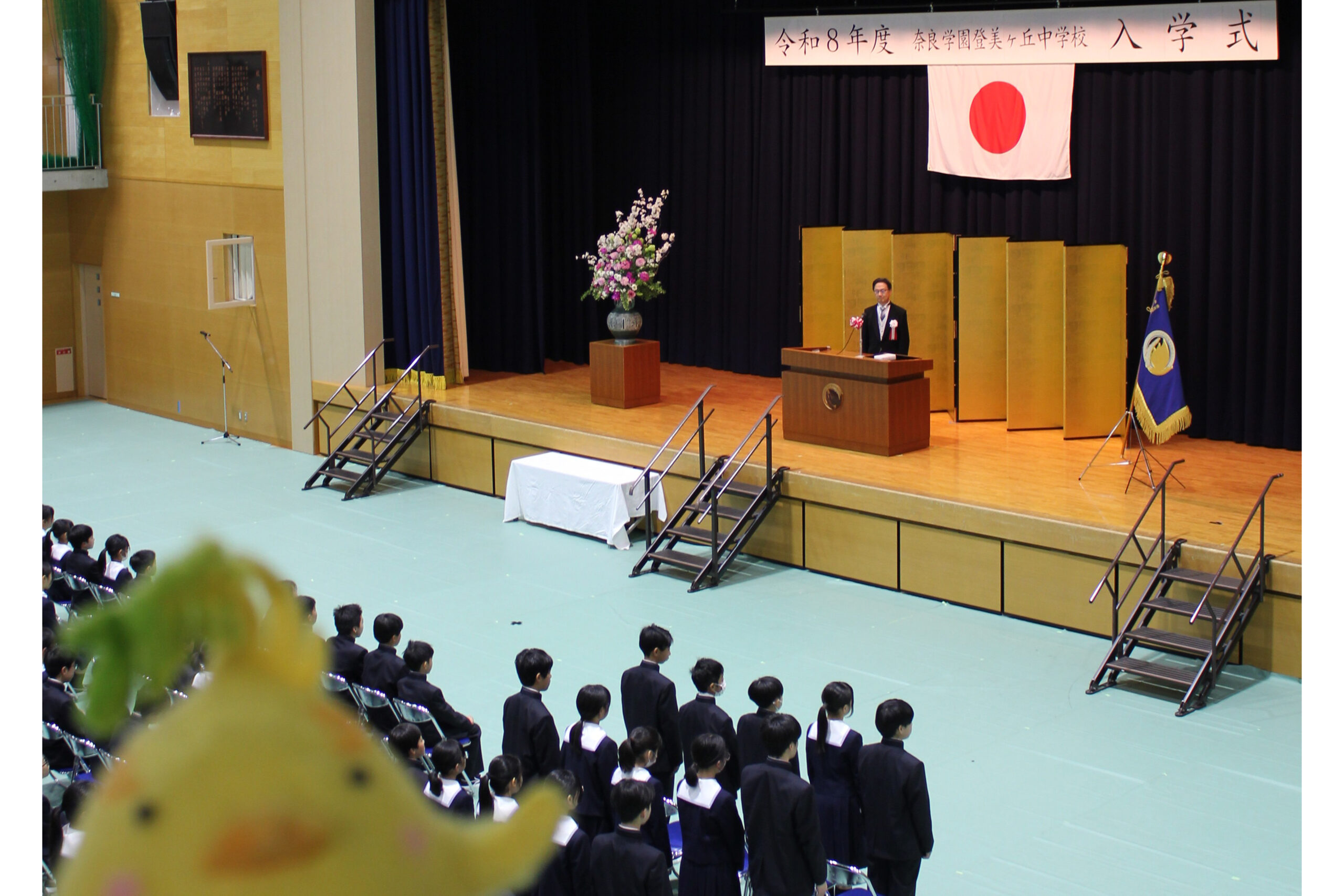 新入生代表生徒からは、「新たな仲間との出会いを大切に、共に協力し合い、探究学習や様々な学校行事、部活動などに楽しみながら挑戦していきたい。」と力強い誓いの言葉があり、在校生代表の生徒会長からは「奈良登美は多くのことを学ぶチャンスをたくさん作ってくれるところです。いろんなことに挑戦し、『奈良登美ファイティングスピリッツ』を存分に発揮してください。」と歓迎の言葉が贈られました。