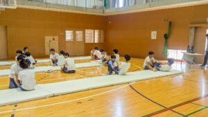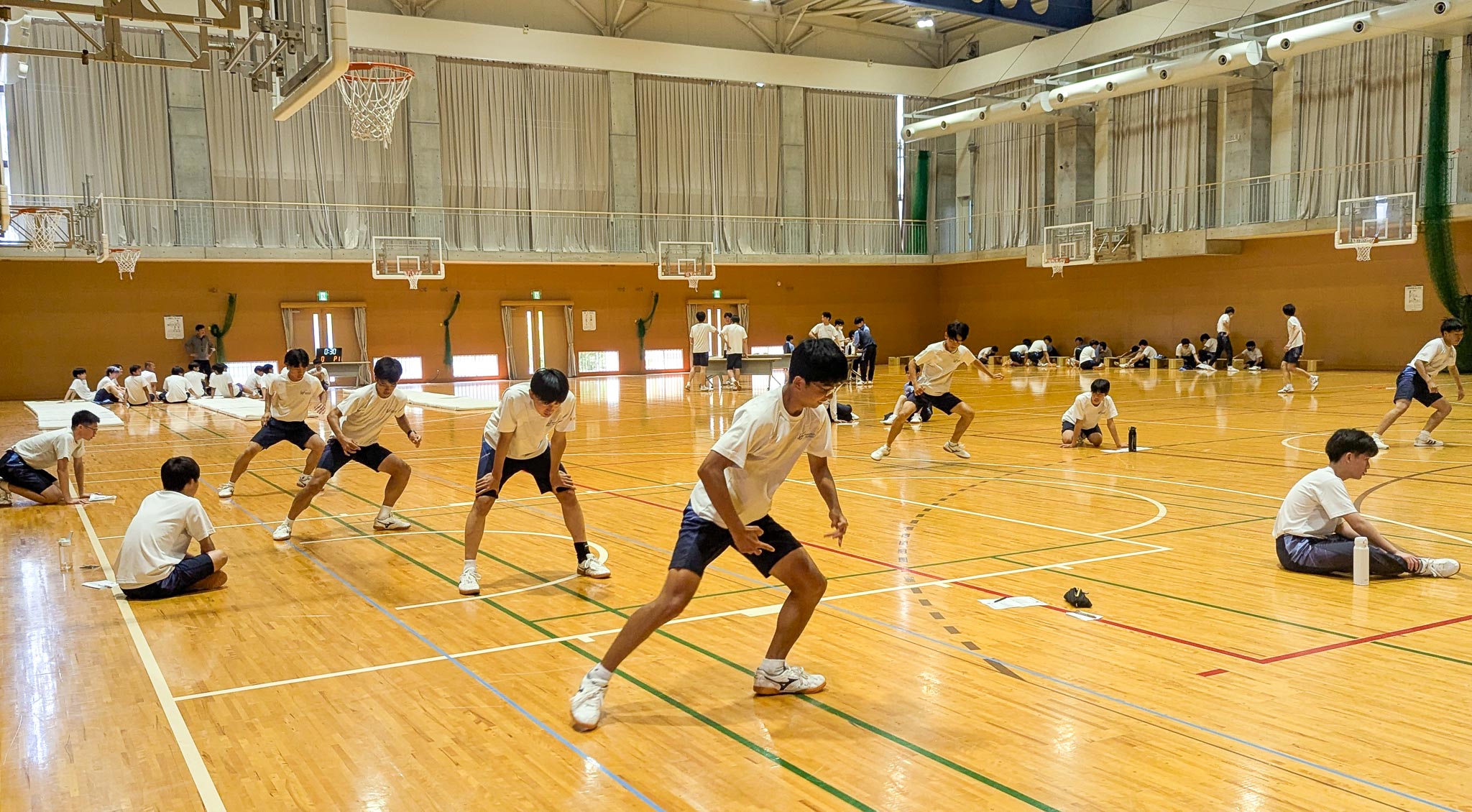学年ごとに新体力テストを実施しました。総合グラウンドで50m走・ハンドボール投げ・持久走、体育館で握力・反復横とび・立ち幅とび・長座体前屈を測定。