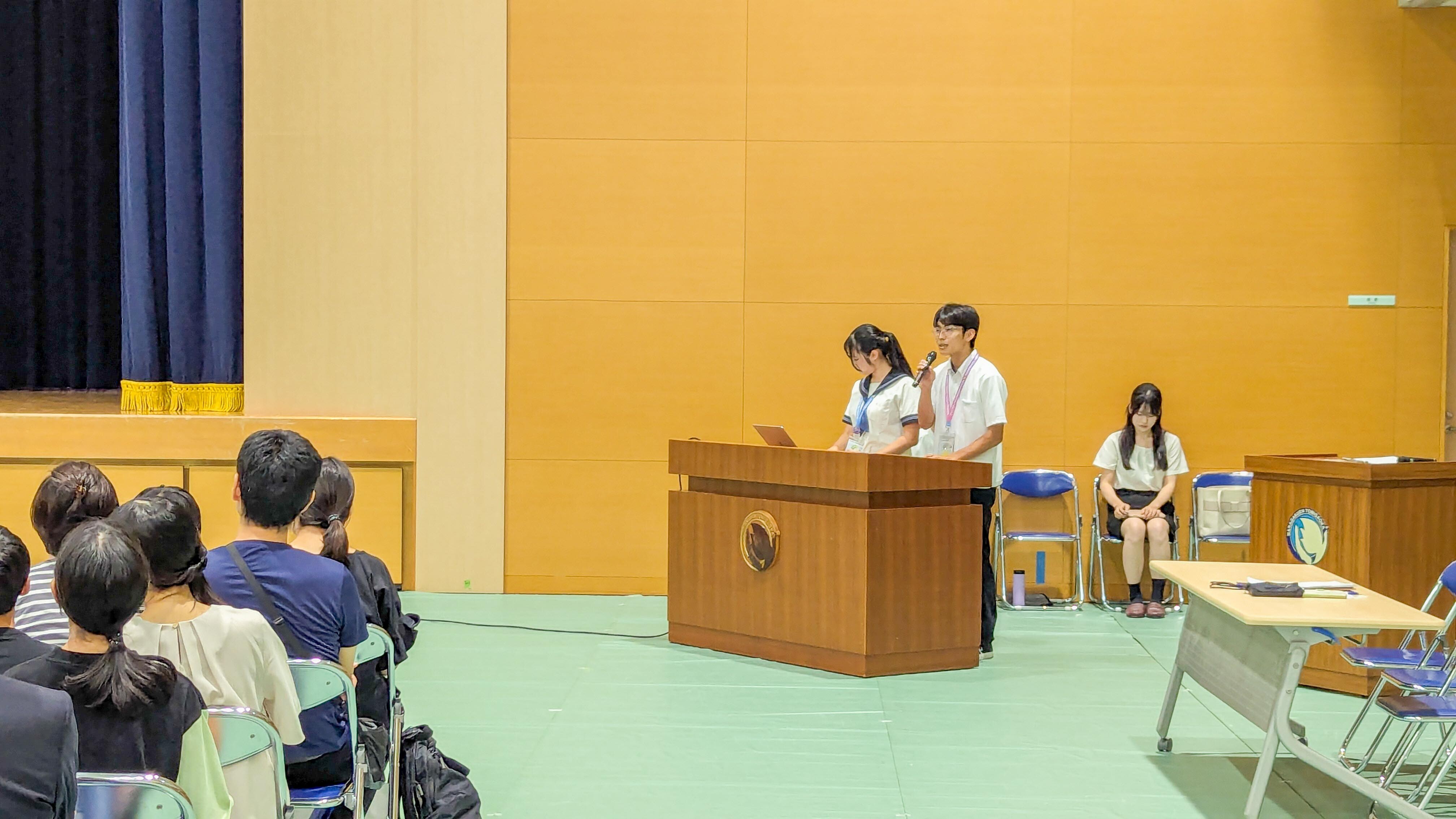 毎年、本校体育館で開催する入試説明会・学校見学会の会場設営を部活動で頑張っている部員たちが手伝ってくれています。体育館のシート敷き、縦横に張られたメジャーに合わせての椅子並べ、また説明会後の撤収作業や清掃まで協力し合ってテキパキと作業をしてくれます。そのお陰で、本校を目指してくれる子どもたちや保護者の皆様を快適な会場でお迎えできることを大変嬉しく思います。他にも、広報ボランティア「チームなとみん」として受付や案内、学校見学で説明してくれたり、全体会で学校紹介をしてくれる生徒もいます。