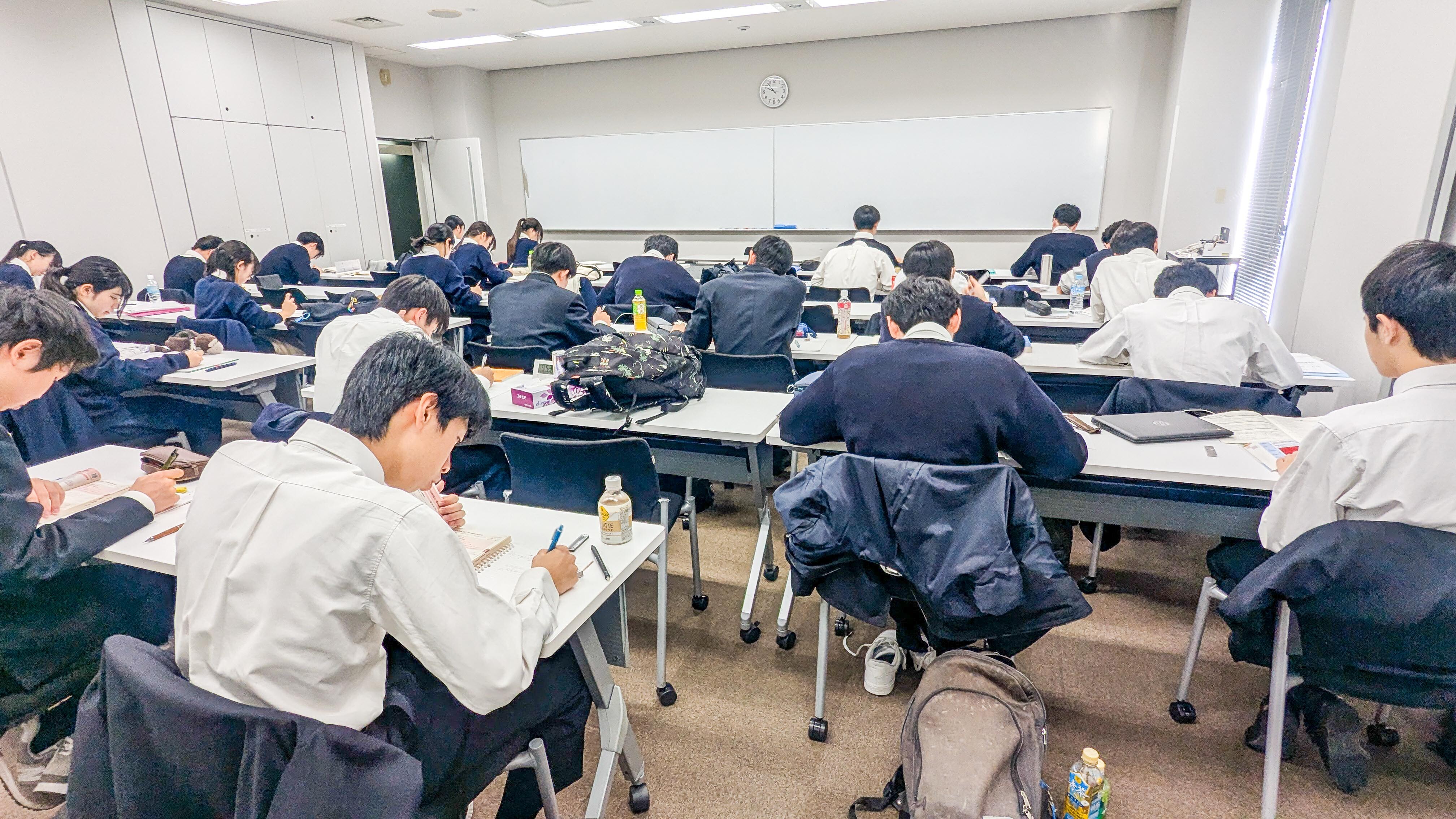 大阪南港のホテルにて2泊3日で開催されているY3(高2)冬期学習合宿を激励に行ってきました。学年の半数を超える生徒たちが参加し、大学受験に向けて主体的に長時間の学習マラソンに取り組み、実践力を養成することを目標として、3日間で合計30時間の自学自習に挑みます。