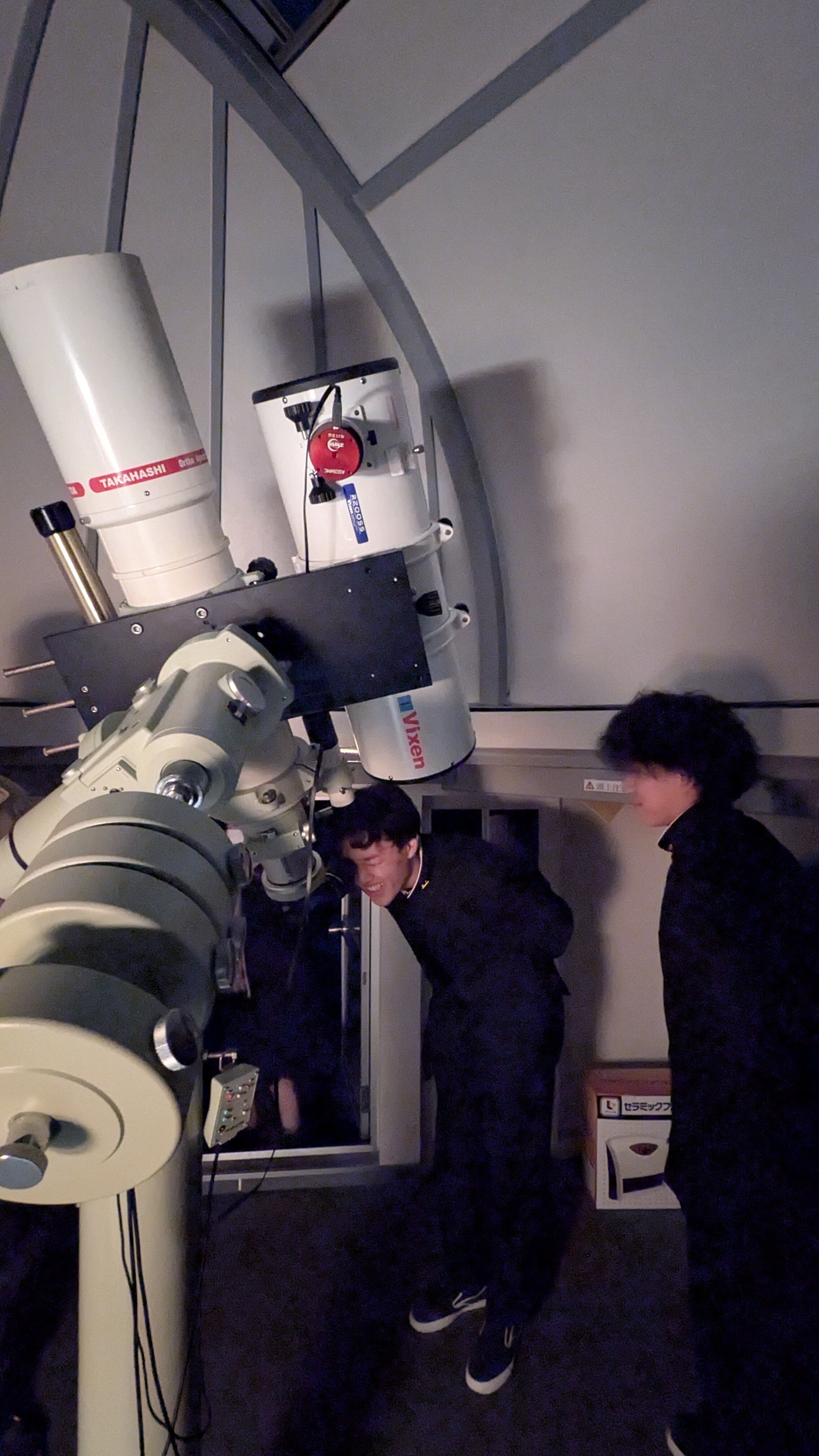 まずは木星。今の夜空で一番目立っていると言っても過言ではありません。独特の縞模様やガリレオ衛星までもがはっきりと観察でき、なかなかの見ごたえでした。他にもオリオン座のリゲルや大星雲、そしてふたご座付近の散開星団など、短い時間ではありましたが幾つもの星々を見ることができ、生徒たちは冬の星空を楽しむ有意義なひとときを過ごすことができました。
