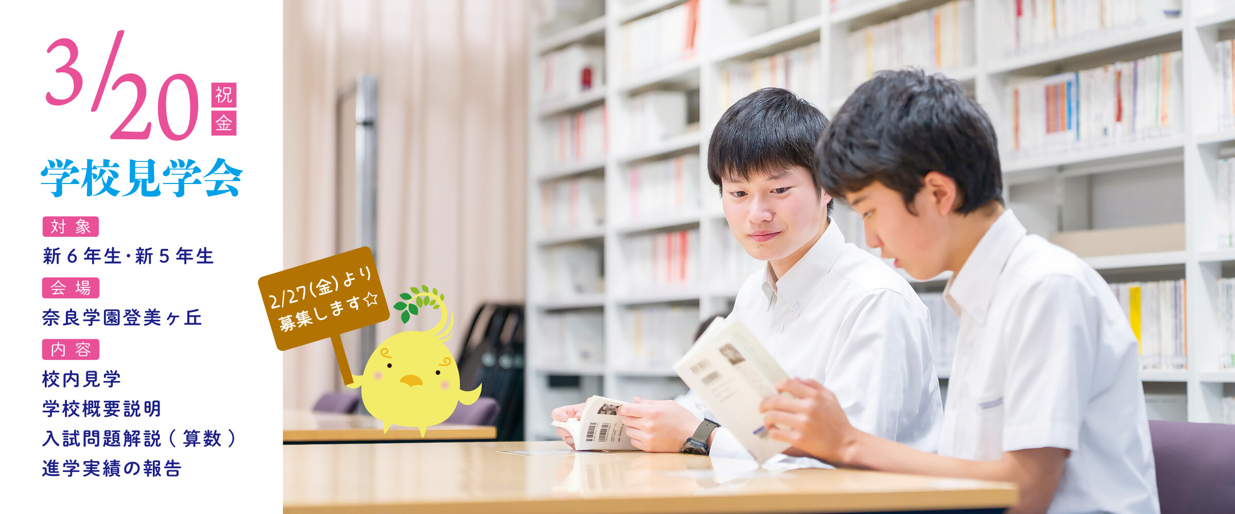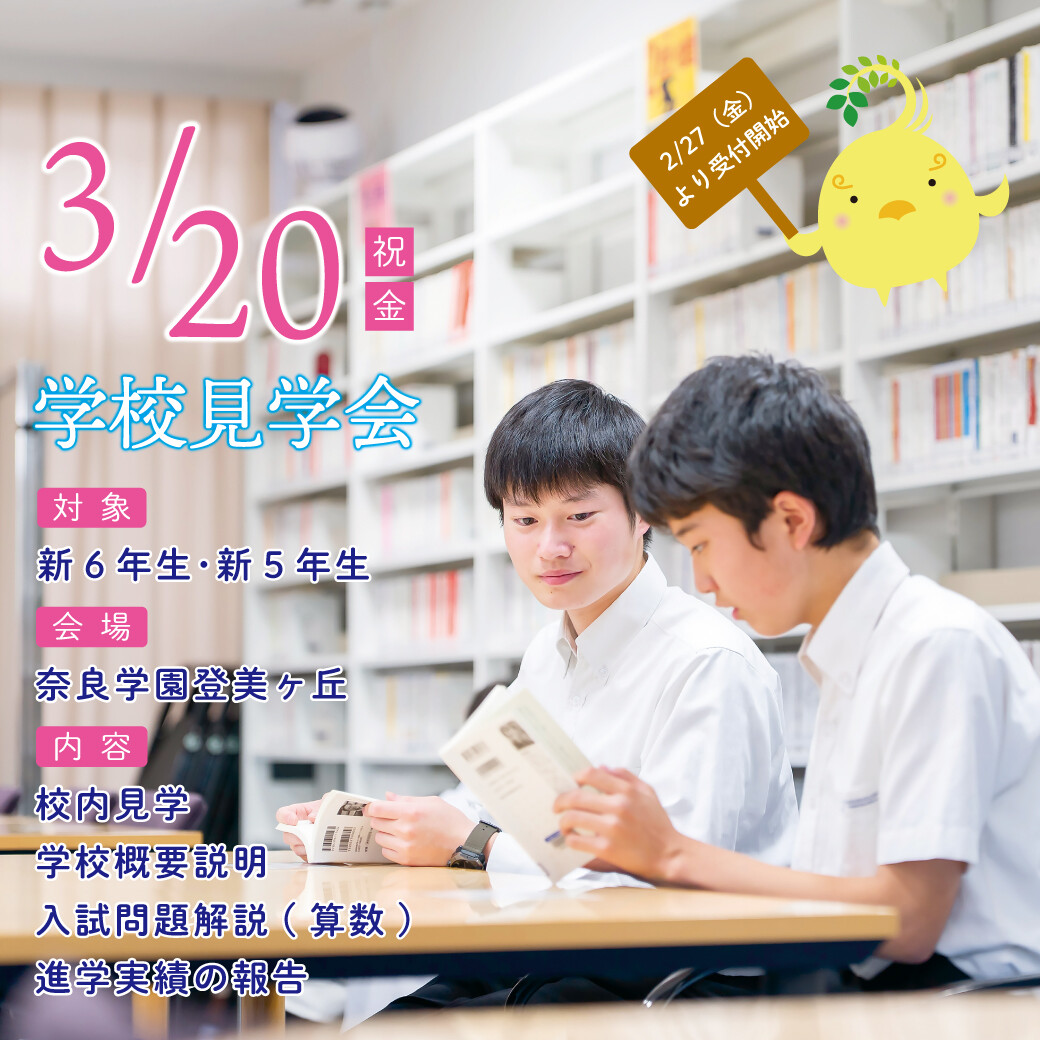 2026.02.02【交通研究部】2/8(日)「奈良鉄道まつり」(平城宮跡歴史公園内)に出展します! 2025.12.01【WEB出願】12/1(月)10:00より出願受付を開始します 2025.12.01【ココロコミュ】"チームなとみん"が紹介 ナラトミ生お気に入りの キャンパス"推し"スポット! 2025.11.30【youtube】令和8年度 入試説明会動画 2025.11.27プレテスト答案の返却について 2025.11.19【PDF】学校感染症による出席停止について