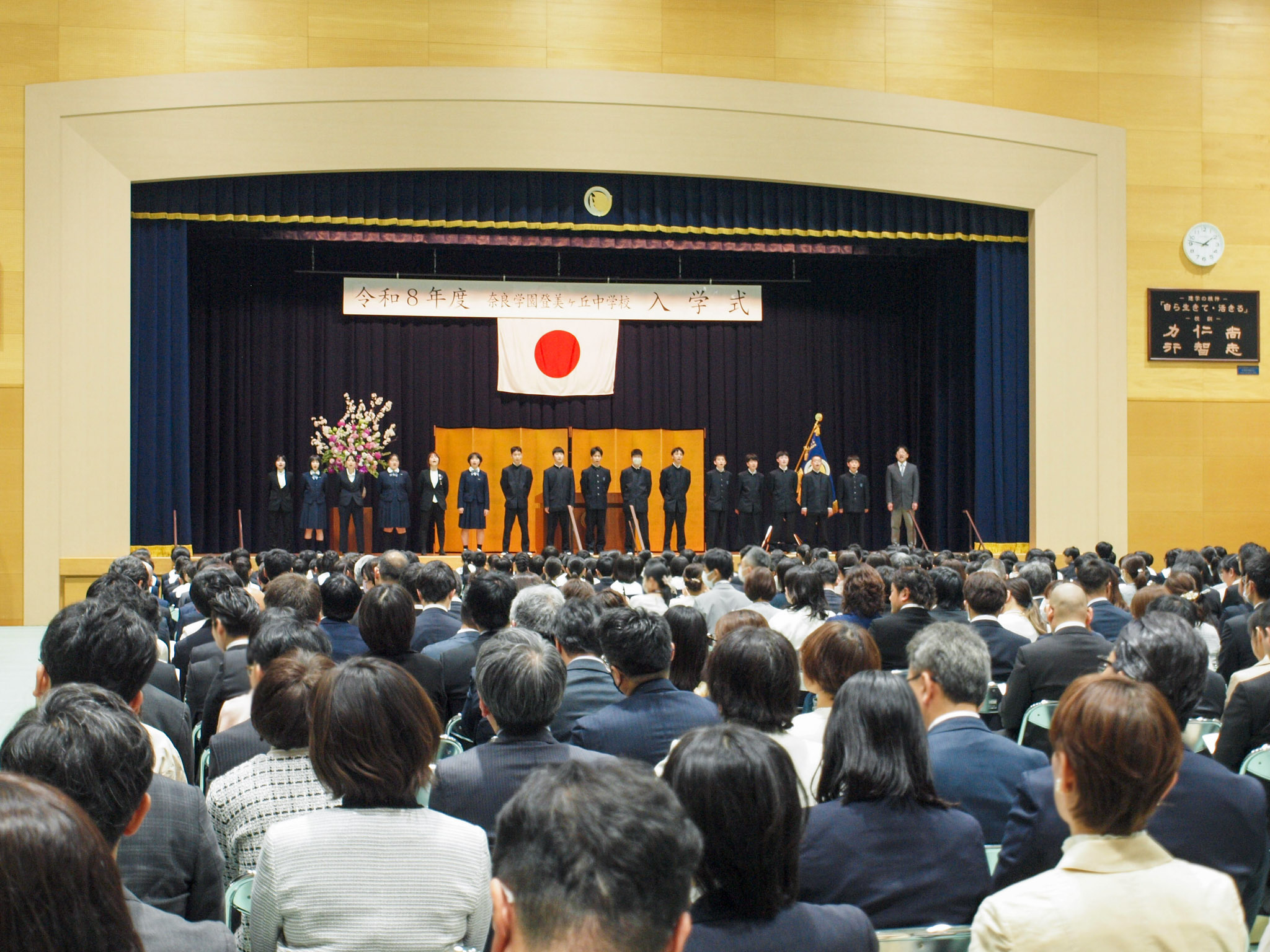 在校生代表は、「中学・高校生活はあっという間に過ぎます。今日という日は今日しかありません。夢や目標をしっかり見据え、全力で取り組む6年間にしてください」と新入生を励ましました。