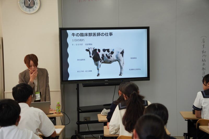 将来の仕事について、年齢の近い先輩からお話を伺えるのは貴重な機会です。講師の先生方の講演の後、生徒たちは本校の大先輩に対して様々な質問をぶつけていました。また、講座終了後に、個別で相談に訪れる生徒もいました。この行事はY1・Y2の二年間、合わせて4講座を受講することができ、受けられなかった講座も後日、動画で視聴することもできます。高校入試がない中高一貫教育だからこそ、中学3年・高校1年のこの時期に、自身の進路についてじっくりと考える時間を持って欲しいと考えています。