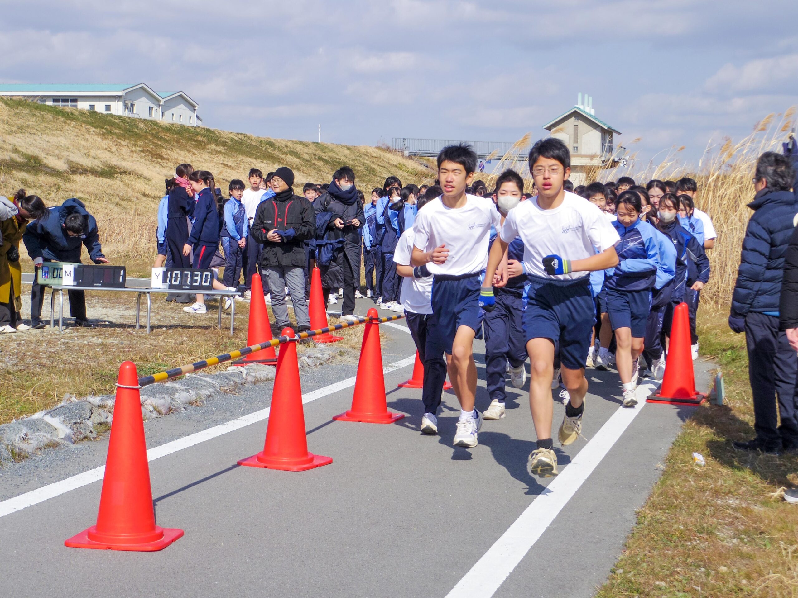 2月7日(金)、本校伝統の「木津川マラソン」を開催しました。今季最強の寒波が到来する中、M3・4生(中学1・2年生)は8.4km 、Y1〜Y3生(中学3年生~高校2年生)は9.6kmを走りました。