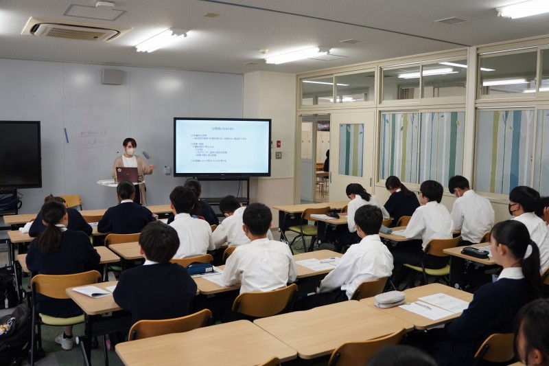 自分たちと歳の近い先輩から、ご自身の仕事のやりがいや、その仕事に就くまでの経緯を語っていただくだけでなく、「中高生のうちにやっておいた方がいいこと」や、「自身のキャリアを形成するための心構え」など、多岐にわたる内容についてお話しいただき、生徒にとっても非常に刺激的な内容だったようです。