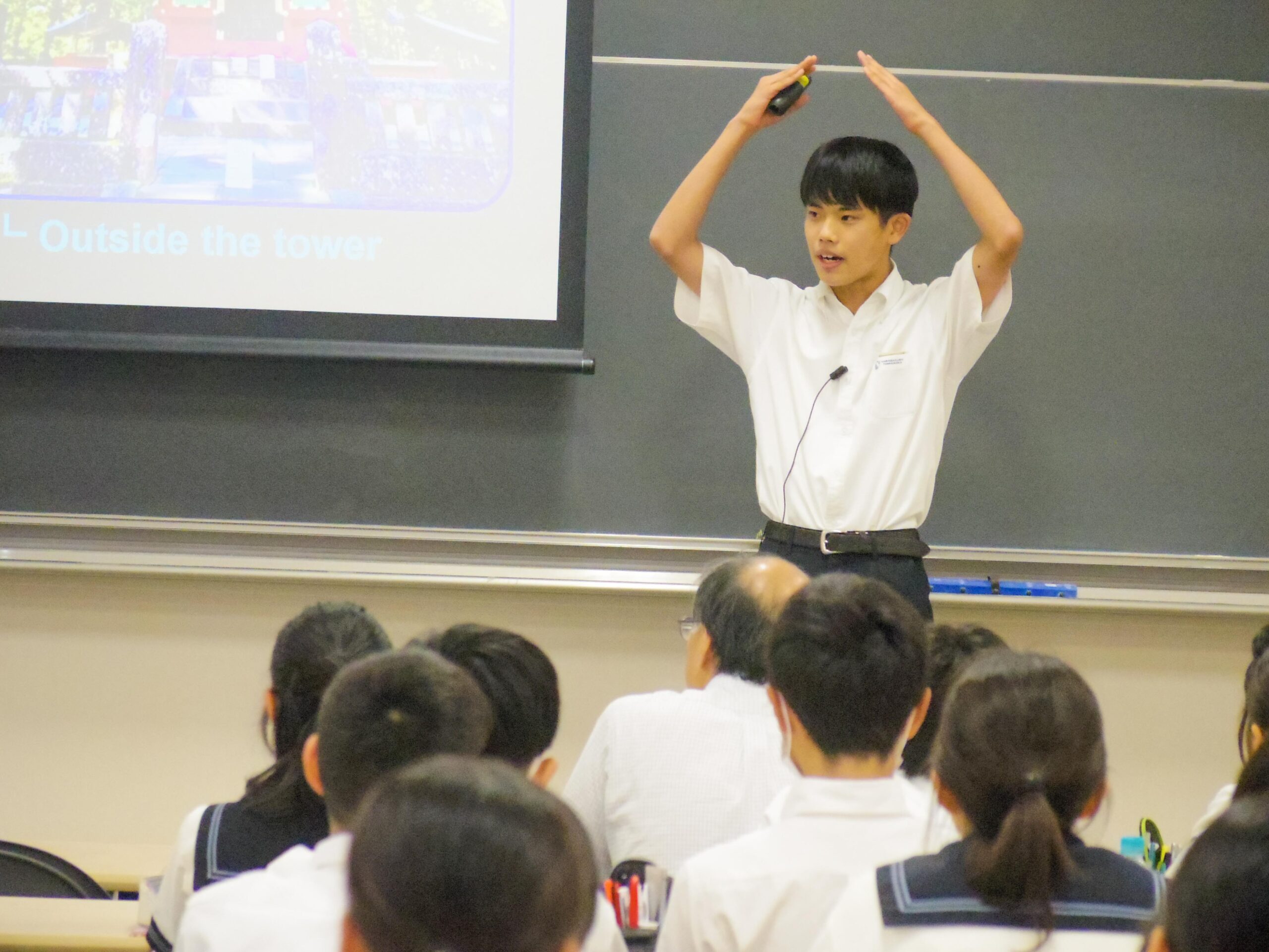 今回の発表原稿はすべて生徒自身が作成したもので、スライドに工夫を凝らし、観客とのクイズ形式のやり取りを取り入れるなど、インタラクティブな内容が特徴でした。多くの保護者の皆様もご来校いただき、子どもたちの素晴らしい英語力と表現力を間近でご覧いただきました。
